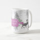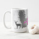 Enjoy your morning coffee this holiday season with a Winter Wonderland Coffee Mug. Mug design features a grey and white winter wonderland scene with a deer and reindeer adorned with falling snowflakes and a fancy magenta tag with the saying, "A cup of cheer!!". Additional gift and holiday items available with this design as well.