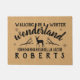 Pretty winter farmhouse look - elegant burlap - classic "walking in a winter wonderland" text with a deer, branches, snowflakes, and your family name
