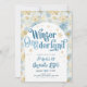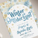The front of the invitation unveils a beautifully scripted "Winter Wonderland," delicately rendered in watercolor strokes, adding a touch of elegance and whimsy to the wintry scene. Adorned with delicate gold snowflakes set against a pastel white and blue winter scenery pattern, the design captures the essence of a snowy landscape, creating a celebration that is as enchanting as the season itself.