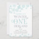 Brrr! Frosty chic invitations for first birthdays feature a top and bottom border of icy turquoise snowflakes with "winter onederland" in whimsical lettering. Personalise with your little one's first birthday party details beneath. Cards reverse to solid light aqua.