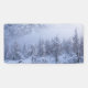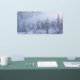 Fog rolling through the spruce forest with mountains above. Beautiful winter wonderland scene.