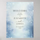 This winter wonderland forest wedding welcome sign can be personalised with your information in chic typography. Designed by Thisisnotme©