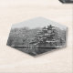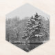 This coaster set features a black and white photograph depicting the beauty of evergreen trees by a lake on a snowy winter day. It transmits the peace and tranquillity that comes with a fresh blanket of snow and the fairyland it creates -- truly a Winter Wonderland! Looking closely, the viewer will note that the photo was taken as snow was falling (and falling), adding unique effects to this idyllic scene. Location: Illinois, USA