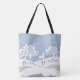 Carry the magic of a serene winter day with you wherever you go. This captivating tote features a beautiful woodland design with rolling hills, graceful deer, gentle rabbits, and snow-dusted trees in a palette of peaceful blue, grey, and white. This bag is perfect for carrying your holiday shopping, books, or daily essentials. A special "Peace To All" message is included on the front and back, which you can easily customise with your own text to create a truly unique and personalised item.