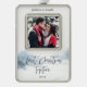 Winter wonderland landscape watercolor background in beautiful shades of grey and blue with custom script in elegant font. Personalise with your own photo, monograms and year. If you choose to remove custom script you can do so, and also you can contact me through the store if you wish to have your own personalised script on the ornament.
