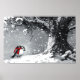 Charming poster in a cartoon style featuring a bird holding a lantern near a tree in a winter wonderland. This cosy, heartwarming scene brings a touch of magic to your space, perfect for the winter season. The vibrant colours and adorable characters make it a delightful addition to any room. Available in various sizes with customisation options.