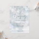 An elegant wedding invitation featuring chic calligraphy script typography and delicate snowflakes falling across your personalised names, special date, and wedding celebration event details on a winter frost background with your wedding website details and your QR code on the reverse. Designed by Thisisnotme©
