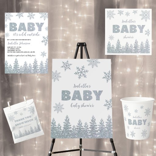 winter wonderland baby showerbaby shower napkinswoodland baby showergender neutral baby showersilver snowflake napkinswinter theme partywinter decorationscalligraphy font designwinter party suppliesgender neutral