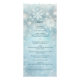 Celebrate the happy couple with a winter wonderland! Snowflakes and shimmery lights scatter among a pale blue background in a subtle winter wood to bring the beauty of winter inside for your celebration. This menu rack card makes a shimmering impression for your wintertime wedding or other winter wonderland event. Available with matching products.