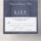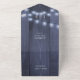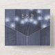 Rustic elegant winter wedding stylish typography script all in one RSVP tear away budget wedding invitation template on navy blue barn wood featuring white snowflakes and strings of twinkle lights. +++++++++++++++++++ The invitation is suitable for winter wonderland theme rustic blue and white weddings.
