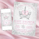Girls winter wonderland snowflake unicorn baby shower invitations with adorable silver diamond unicorn face and pretty pink bow on a beautiful diamond and snowflake winter wonderland background. These elegant pink winter wonderland unicorn baby shower invitations are easily customised for your event by simply adding your details.