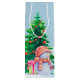 This wine bag design features two snowmen, in front of Christmas tree. Both snowmen are wearing their winter hats and scarves. This design wraps around the bag.