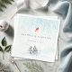 This winter wonderland wedding napkin features a watercolor blue snowy scene with evergreen pine trees and a red cardinal. Customise with the bride and groom's name and wedding date. Perfect for Christmas, mountain and winter weddings. To see the entire snowfall invitation suite keep scrolling or click on Agape.