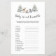 This winter woodland animals "baby word scramble" baby shower game is perfect for a gender neutral woodland baby shower or sprinkle. The classic rustic design features a wintery scene with pine trees and woodland baby animals. The calligraphy is dark grey in colour, with contrasting simple typography, on a basic white background. QSD118