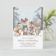 Celebrate your little one’s special day with this Winter Woodland Animals Birthday Invitation, featuring an adorable hand-painted group of forest friends — fox, deer, bear, bunny, and raccoon — all bundled in cozy winter scarves. Soft snowy colors and a charming winter forest background create the perfect magical setting for a winter birthday celebration.