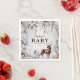 Enchanting winter gender neutral baby shower napkins. Featuring a misty watercolor backgroud, stunning botanical forest foliage, cute woodland animals and a template that is easy to customise.