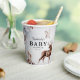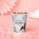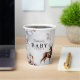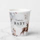 Enchanting winter gender neutral baby shower paper cup. Featuring a misty wintery watercolor backgroud, stunning forest foliage, cute woodland animals and text that can easily be customised.