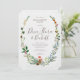 Nature-inspired invitation with a frame made up of pines, ivy, pinecones, berries, and woodland greenery. The beautifully hand painted frame surrounds the text announcing your Engagement Party. A simple design, delicately rendered in beautiful natural colours of green, red, blue, and brown. dark brown reverse with white diamonds.