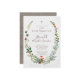 Beautiful woodland-inspired invitation with a frame made up of pine boughs, berries, ivy, pine cones and woodland greenery. The delicate hand painted sprigs surround your text announcing your special Confirmation day- with a cross at the top of the frame and sweet little red fairy tale mushrooms at the bottom. A simple design in beautiful greens and browns with pine brown on the reverse side.
