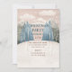 Christmas holiday party Invitation with cartoon winter woodland nordic landscape in pink blush blue colours.