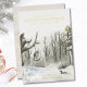 Personalised Christmas card with luxury gold foil typography and fully editable wording. The design features a mid winter woodland nature scene with the warm glow of a street lamp, a duck on the lake, an owl on the swing and a robin in the tree.