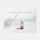 Elegant personalised family name doormat featuring a fox and your family name with your established date set in a classic text on a winter woodland scene with the message "welcome" that is set in an elegant script text.