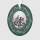 A perfect gift for new homeowners, this elegant acrylic Christmas ornament features front and back photos encircled by a wreath of dark green leaves and white berries. "First Christmas in our new home." curves over the top of each photo, with the year beneath. Customize this round ornament with a family photo or snapshot of your new abode on each side to create a unique keepsake of your first Christmas in your new home.