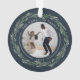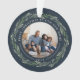 A perfect gift for new homeowners, this elegant acrylic Christmas ornament features front and back photos encircled by a wreath of dark green leaves and white berries. "First Christmas in our new home." curves over the top of each photo, with the year beneath. Customize this round ornament with a family photo or snapshot of your new abode on each side to create a unique keepsake of your first Christmas in your new home.