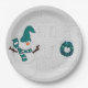 Winter Wreath in Teal with Snowman Holiday House Paper Plate