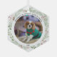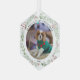 Christmas Photo ornament featuring a botanical winter wreath and your dog's favourite photo. Personalise it with his/her name and year.