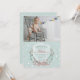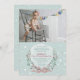 A delicate wreath of berries, foliage and flowers tied with a bow against a light sea-foam, snowy background. Pair it with your photo for a lovely birthday invitation.
