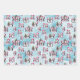 These unique blue and pink Christmas wrapping paper sheets feature unique patterns with adorable penguins on a snowy blue background. Penguins have fun - they decorate Christmas trees, go ice skating, celebrate holidays with family and friends, and enjoy the winter season. It's a perfect Christmas gift wrap idea with a touch of trendy design.