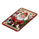 A festive design with a snowman, Santa, deer, and a decorated Christmas tree, set against a golden, dotted floral background, evoking warmth and holiday magic. "Original Image was generated by Meta AI. AI generated artwork. Licensed under CC BY-SA 4.0."