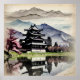Immerse yourself in the serene beauty of this Japanese-inspired landscape, featuring a majestic traditional castle surrounded by vibrant spring blossoms. Soft pink cherry trees line the reflective waters, creating a dreamy mirror image beneath towering misty mountains. Painted with delicate watercolor textures and rich atmospheric tones, this artwork blends tranquility, nature, and classic architecture into a peaceful, captivating scene.