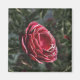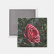 A bright magenta rose sparkles with the crystals of the last frost of winter.