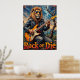 This dynamic painting captures a majestic lion, adorned with sunglasses and a leather jacket, unleashing a powerful electric echo from a stark, bare tree. A textured, wintry sky stretches behind. The artist's use of bold, textured brushstrokes emphasizes the raw energy of the performance and the "Rock or Die" attitude in a stark setting.