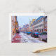 Postcard featuring a winter scene from one of the busy main streets in Bamberg, Germany at the time of winter holidays at dusk. The text reads "Greetings from Bamberg Germany" and it's totally customisable.