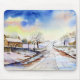 Wintery Lane Watercolor Landscape Painting Mouse Pad