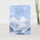 Winter scene snowy mountains, flying birds and snowflakes Bible verse Christmas card design. Fully customisable with your own family name on the front and you can change the messages and verses inside the card as you wish. The back design contains the Bible verse Luke 1:14 - 'And thou shalt have joy and gladness; and many shall rejoice at his birth.' (KJV.)
