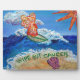 The painting shows a glimmering orange surfing angel on a blue ocean with a sparkling sun. Sea foam washes up on the sand surrounding the words "Wipe Out Cancer". There is a pink sea shell on the beach. The painting was rendered in acrylic and sprinkled with glitter for texture and shine. Personalise this cancer art painting a with your own text or images using the "Customise It" option. It makes for a great cancer patient or caregiver support gift!