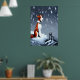 A brown and white Wire Fox Terrier sitting in the snow on a snowy day. This is a AI generated art.