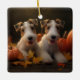 Wire Fox Terrier Puppy Autumn Delight Pumpkin Ceramic Ornament