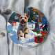 Wire Fox Terrier Running Snow with Christmas Hat 6 Cm Round Badge