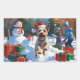 Wire Fox Terrier Running Snow with Christmas Hat Rectangular Sticker
