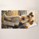A towel featuring a scene of a Wire Hair Fox Terrier sitting on a hillside among flowers in the countryside in Autumn. This towel is sure to delight anyone who loves Wire Hair Fox Terriers. generativecontent