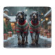 This festive design captures the joyful spirit of the holiday season, featuring an adorable dogs.Nestled in a winter wonderland, complete with a decorated Christmas tree, and beautifully wrapped presents. Snowflakes gently fall, adding a magical touch to the scene, while the vibrant colours of the holiday decorations create a warm and cheerful atmosphere.