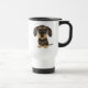 Wirehaired Dachshund Travel Mug. Wild boar and tan coloured Teckel. Makes a cute gift for wiener dog lovers.