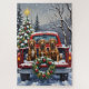 Embrace the holiday season with this charming Wirehaired Pointing Griffon Christmas design! This delightful scene captures three handsome, scruffy Wirehaired Pointing Griffons enjoying a festive ride in a classic red pickup truck, set in a quiet snowy winter forest. The vintage truck is adorned with a beautiful Christmas wreath, featuring sparkling red and gold ornaments and warm yellow lights. Gentle snowflakes fall throughout the scene, and a decorated Christmas tree in the background completes this cozy winter wonderland. This design perfectly expresses the joyful spirit of the holidays, making it an excellent Christmas gift for any Wirehaired Pointing Griffon owner, dog lover, or enthusiast of festive dog breeds.