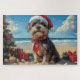 Wirehaired Pointing Griffon Dog Christmas Beach Jigsaw Puzzle