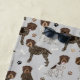 Cute wirehaired Pointing Griffon dogs sit and stand with paw prints and dog bones pattern on a grey background.